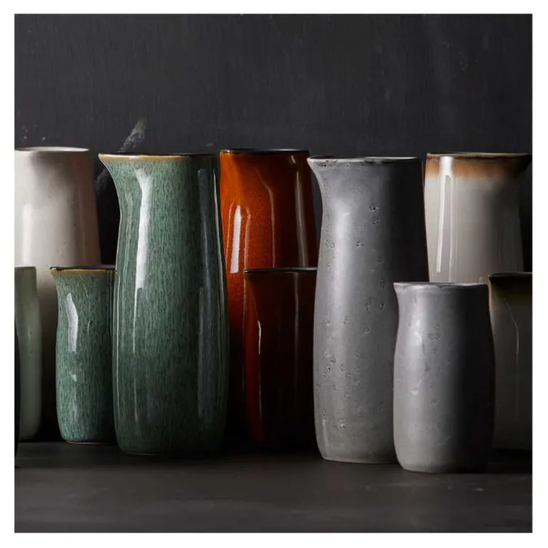 BITZ melkekanne er designet med elegante linjer og den samme enkle designen som de øvrige produktene i steintøyserien. Den fine kannen uten hank. Melk til kaffen og teen har aldri sett bedre ut. Den reaktive glasuren kombinert med blanke og matte overflater, fremhever steintøyets glød og stimulerer alle sanser. Steintøyet er håndlaget, og den unike glaseringsteknikken gir hvert enkelt produkt et helt unikt uttrykk med vakre variasjoner i glasurens avtegninger og nyanser, selv innen samme hovedfarge