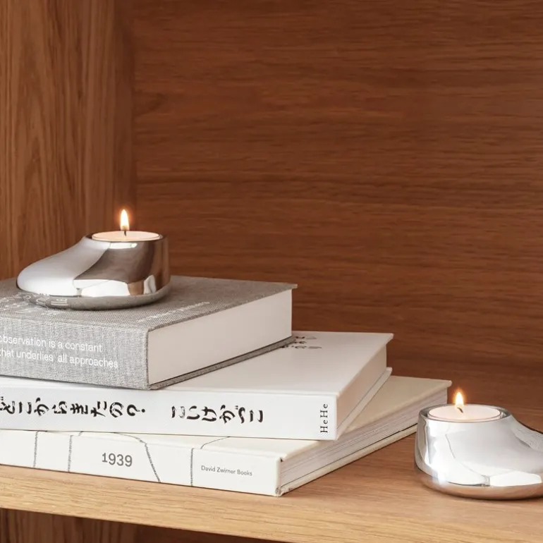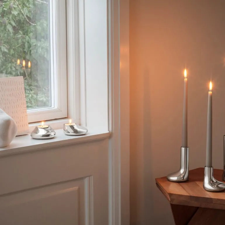 Mellow telysholder sett 2 deler sølv fra Eva Solo. Forgyll hjemmet med et sett sjarmerende Mellow telysholdere. Telysholderne tilfører et sjarmerende og personlig element til interiør eller dekkede bord med sin skulpturelle og lekne form. Når lyset fra flammene reflekteres i deres blanke overflater oppstår et fortryllende og dansende lysspill.