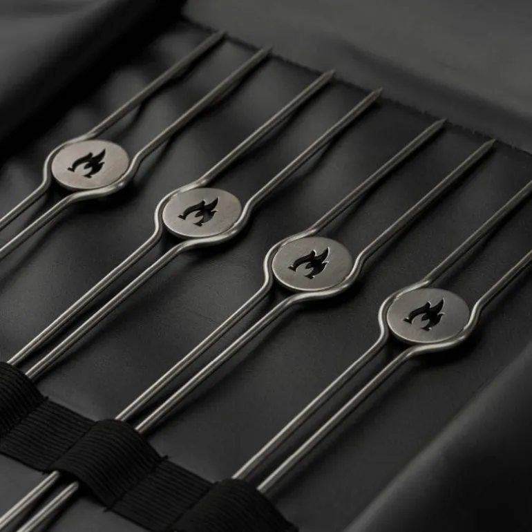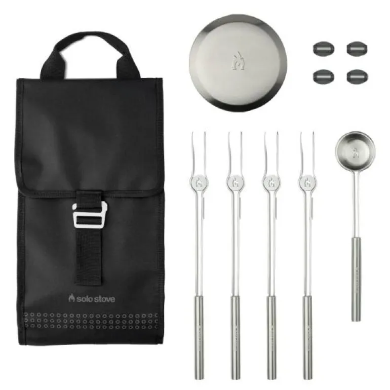 Tilbehørspakke for bordmodellene, Mesa, av den rentbrennende røykfrie bålpannene fra Solo Stove. Pakken inneholder lokk, grillpinner med støtter, pellets-skje og tilpasset bæreveske. Ha det du trenger for kosestund med grilling av pølser eller marsmallows klart i egen stilig bæreveske.