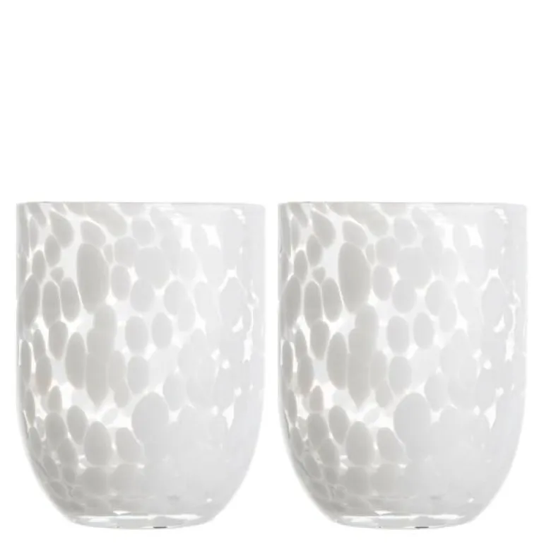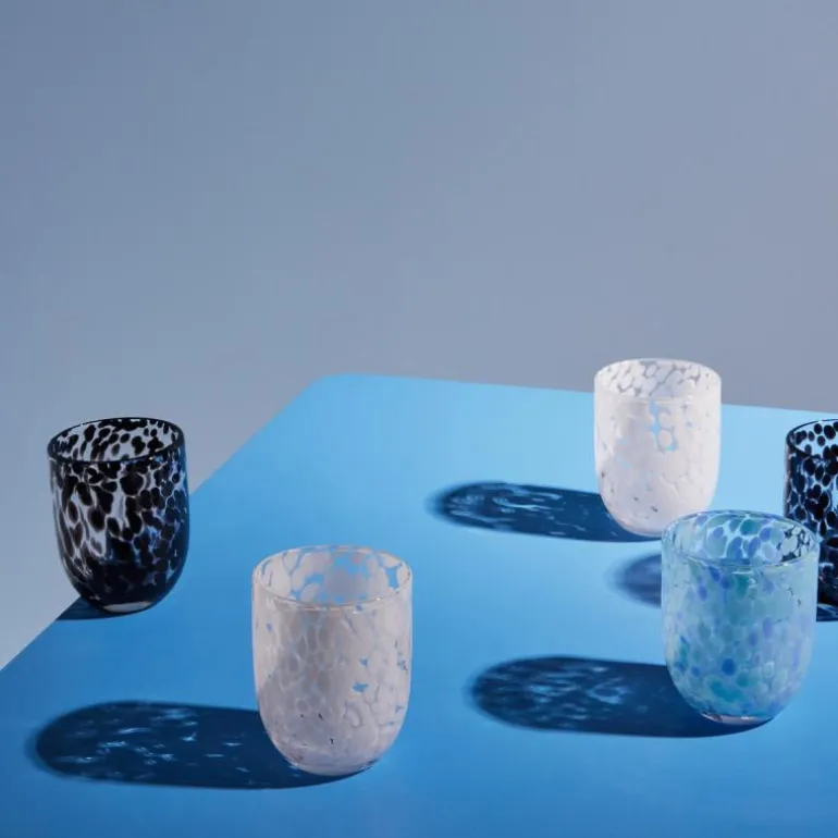 Som en lekker lakriskaramell – søt, deilig og uimotståelig. Laget av håndblåst glass med et lekent konfettimønster av midnattsvarte toner. Vi serverer drikke, juice, melk eller kaffe. Den kan brukes til telys og badet lyses opp med et fantastisk tannbørsteglass. Håndlaget, farge- og teksturforskjeller kan forekomme. Tåler vask i oppvaskmaskin. Design Byon Studio. Leveres i 2-pakninger i Byon-boks.