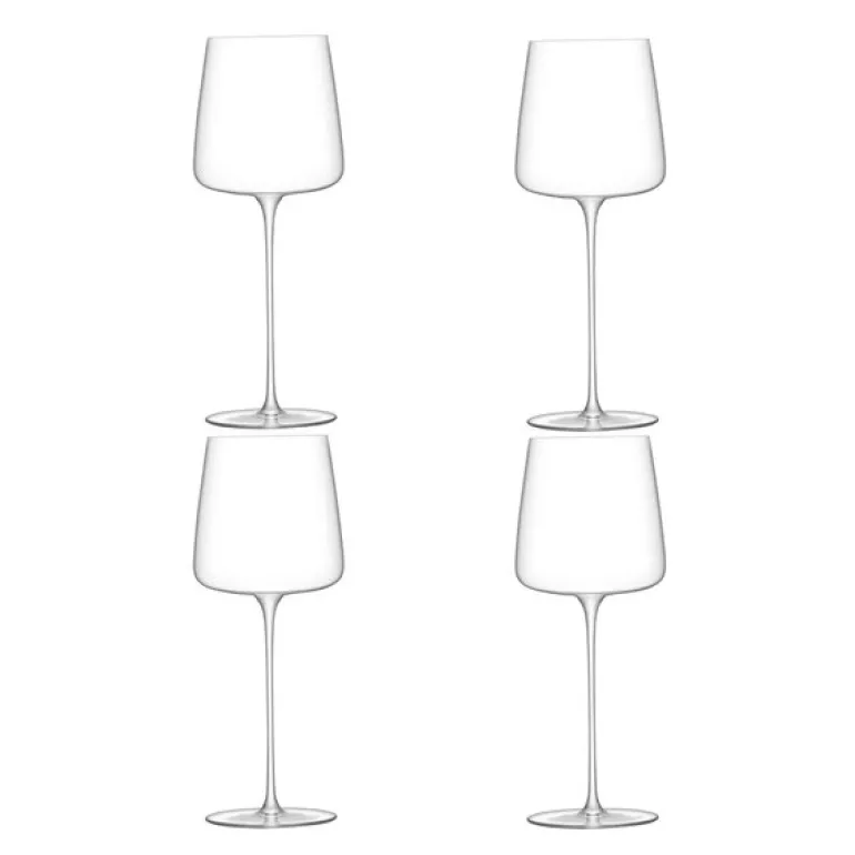 Dette settet fra LSA Internationals Metropolitan-serie består av fire Grand Cru vinglass à 68 cl, utformet med en skarp kantet profil og en høy, balansert stett. Glassene er laget i krystallint glass og gir både styrke og visuell klarhet.