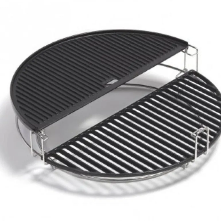 Halvmåneformet grillrist i støpejern til Kamado SUMO Midi 21. Støpejernsgriller gir en meget god varmefordeling og minimal avkjøling når du legger kjøttstykket på grillen. Gir også veldig fine grillmerker. Passer godt til den halvmåneformede grillen og støpejernstoppen. Bruk denne halvmåneformede støpejernsgrillen på din Kamado Sumo for å gi jevnt høy varme og vakre grillmerker. Halvmåneformen gjør at denne grillristen passer på begge nivåer av ditt Kamado Sumo grillstativ, noe som gir stor allsidighet til matlagingen. Plasser grillen på den nedre delen av grillen rett over kullet for høy direkte varme eller plasser den oppå grillen for å karamellisere maten over den perfekt glatte grilloverflaten. Kamado Sumo Cast Iron Grill Grid kommer forbehandlet og er trygt å bruke på alle griller og komfyrer slik at du kan lage de deilige oppskriftene du ønsker.Mål:Lengde: 47 cmBredde: 23 cmHøyde: 1,4 cm