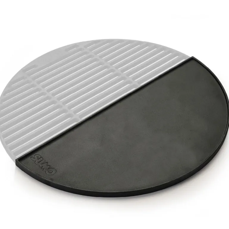 Stekeplate/grillrist i støpejern til Kamado SUMO Midi 21. Denne dobbeltsidige grill- og stekepannen i støpejern er halvmåneformet. Den ene siden er ribbet som en grillplate for riktig grillmønster på steken, på andre siden er platen flat, og kan brukes som stekebrett.Mål:Lengde 47 cmBredde: 23 cmHøyde: 1,4 cm