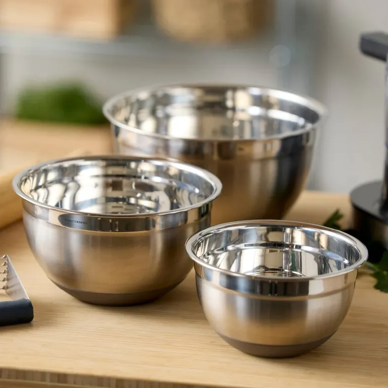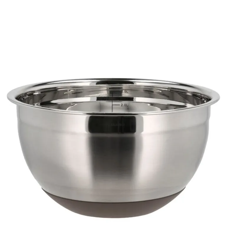 Miksebolle med silikonbunn med kapasitet på 3L i fargen latte fra Blomsterbergs er det ideelle valget for både små og store kjøkkenoppgaver. Laget av robust rustfritt stål med en sklisikker silikonbunn, gir den maksimal stabilitet under miksing.