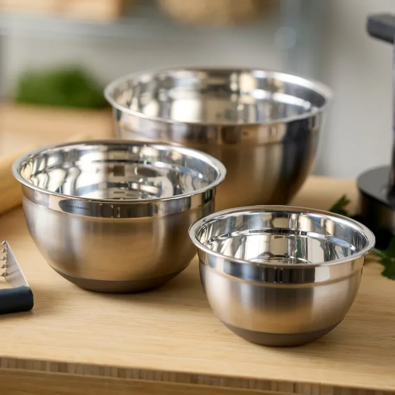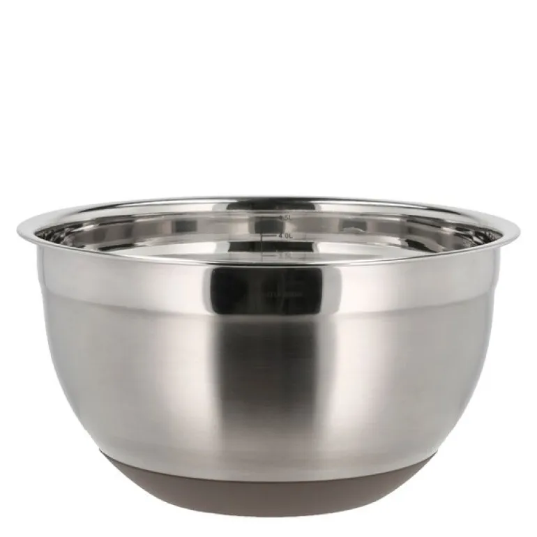 Miksebolle med silikonbunn med kapasitet på 5L i den vakre fargen ‘latte’ fra Blomsterbergs er det perfekte valget for de større kjøkkenoppgavene. Laget av holdbart rustfritt stål og utstyrt med en sklisikker silikonbunn, sikrer bollen stabilitet under bruk.