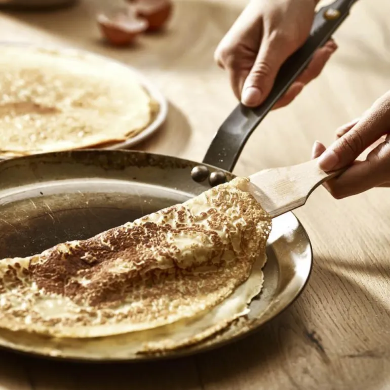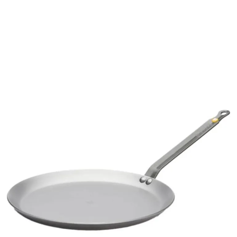 Pannekakepanne 26 cm fra De Buyers serie Mineral B, er en stekepanne med lav kant, ideell for å lage tradisjonelle, sprø og luftige crêpes eller pannekaker.