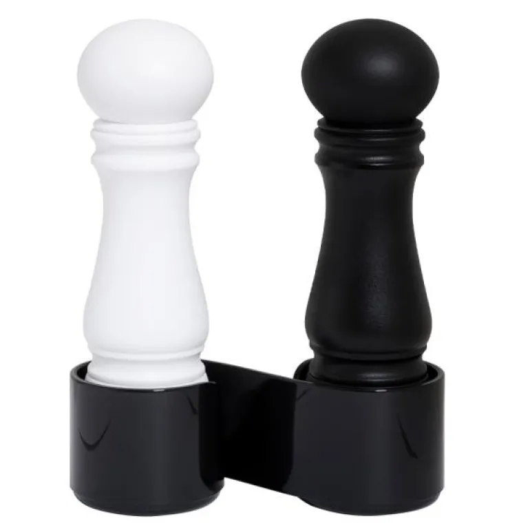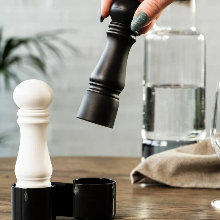 Mini kvernsett fra CrushGrind er et praktisk og kompakt sett som passer perfekt til ethvert bord, både hjemme og på tur. Med en høyde på 12 cm i stilrene svart/hvit-farger, er disse små kvernene ideelle for camping, piknik eller andre aktiviteter der plass er viktig. Settet leveres med en praktisk holder som forhindrer at salt- eller pepperstøv drysser på bordet, noe som gjør det både funksjonelt og enkelt å bruke.