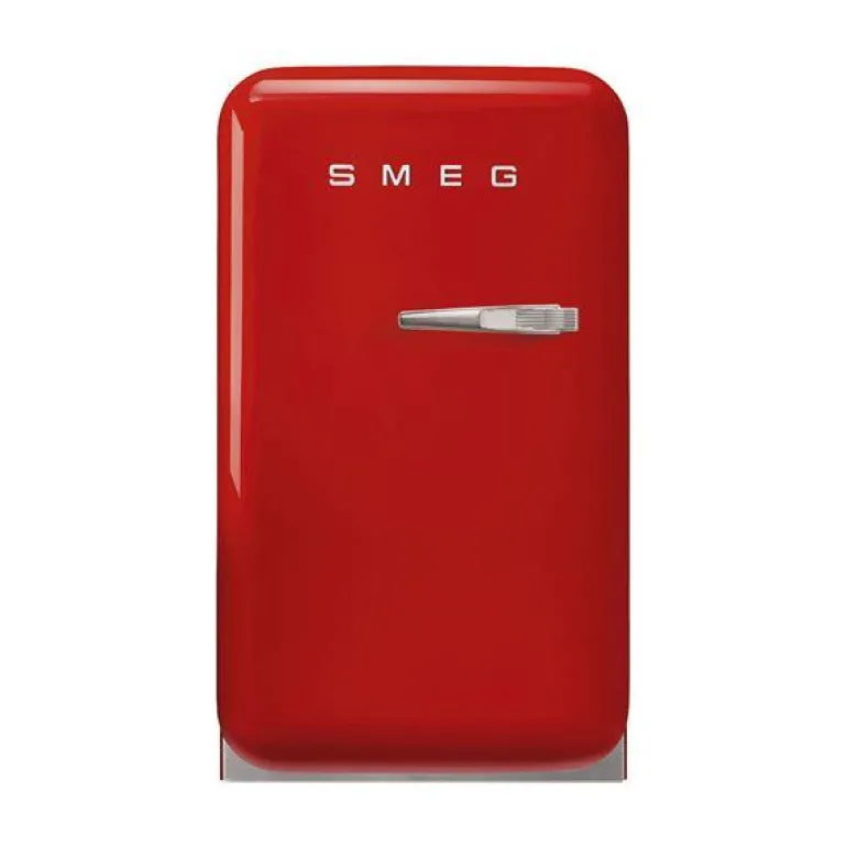 Rødt, lite Smeg kjøleskap/minibar (FAB5) i 50-talls retro design, 73 cm, venstrehengt. Et lekkert kjøleskap i støpt plast som lyser opp ditt kjøkken.