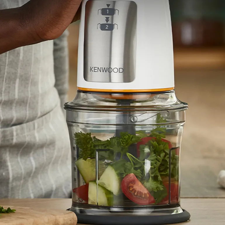 Minihakker 0,5L hvit fra Kenwood. Denne minihakkeren er den raske og praktiske måten å forberede mindre mengder mat på. Den er kompakt og effektiv med vår Quad Blade™-systemteknologi og hastighetsregulering med to trinn. Lag raskt og enkelt dipper og sauser, eller lag en deilig hjemmelaget salsa eller guacamole. Med to hastigheter får du den perfekte hakkingen.