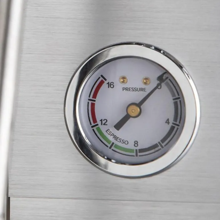 Maskinens profesjonelle 58 mm filterholder sørger for jevn ekstraksjon, enten du brygger enkel eller dobbel espresso. Det integrerte manometeret gir deg full kontroll over trykket under bryggingen, slik at du alltid oppnår optimale resultater. Det robuste dampmunnstykket i rustfritt stål gjør det enkelt å lage kremete melkeskum, perfekt for cappuccino, latte eller andre melkebaserte favoritter.