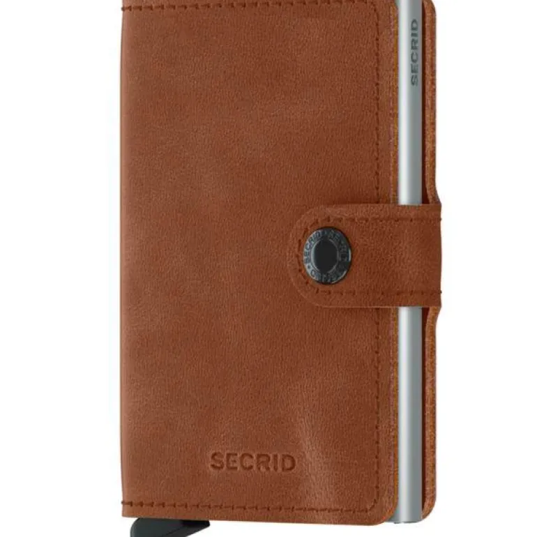 Secrid Miniwallet Vintage cognac silver har skinnomslag som er forsiktig slipt og vokset slik at overflaten får et stenvasket utseende der riper og slitasje vil sette seg i læret og gi lommeboken et levende og personlig uttrykk over tid.Selve kortholderen er i aluminium med patentert skyvesystem som gjør det enkelt å få tak i akkurat det kortet du trenger ved hjelp av et lett trykk på utløserknappen. Kortholderen beskytter kortene fra å bøyes eller knekke, og sikrer kortene mot tyveri ved at den blokkerer for trådløs avlesning. Med plass til 4-6 kort.Omslaget i mykt skinn gjør at kortholderen fungerer som en liten lommebok med plass til sedler, billetter og annet.Secrid har stor suksess med sin kortholder som ble lansert i 2009, og mye av dette skyldes en unik kombinasjon av moderne produksjonsteknikker, godt kvalitetsskinn og et gjennomtenkt design.Selve kortholderen er i aluminium og dette gir den lav vekt, men beskytter også kortene mot å bøyes eller knekke, og den sikrer kortene mot tyveri så lenge de er inni kortholderen. (RFID sikker; radio-frequency identification). Ved hjelp av en liten knapp skyves kortene ut av holderen slik at man enkelt får tak i det kortet man skal bruke.Secrid Miniwallets er et stort spekter av kortholdere med skinnomslag som gjør at kortholderen også fungerer som en liten lommebok der man kan oppbevare sedler, billetter og annet.Hver kortholder rommer 4-6 kort; 4 kort med opphøyet preging og opp til 6 kort uten preging.