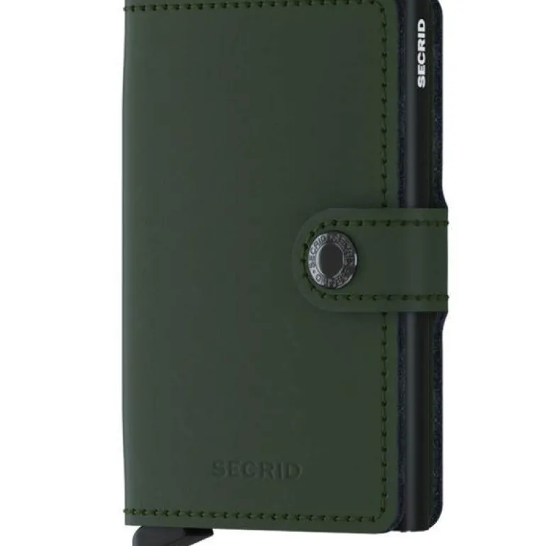 Secrid Miniwallet Matte green-black har skinnomslag i glatt matt skinn som gjør den fargesterk og stilig. Dette er en robust skinntype som tåler hverdagens kjas og mas.Selve kortholderen er i aluminium med patentert skyvesystem som gjør det enkelt å få tak i akkurat det kortet du trenger ved hjelp av et lett trykk på utløserknappen. Kortholderen beskytter kortene fra å bøyes eller knekke, og sikrer kortene mot tyveri ved at den blokkerer for trådløs avlesning. Med plass til 4-6 kort.Omslaget i skinn gjør at kortholderen fungerer som en liten lommebok med plass til sedler, billetter og annet.Secrid har stor suksess med sin kortholder som ble lansert i 2009,og mye av dette skyldes en unik kombinasjon av moderne produksjonsteknikker , godt kvalitesskinn og et gjennomtenkt design.Selve kortholderen er i aluminium og dette gir den lav vekt , men beskytter også kortene mot å bøyes eller knekke, og den sikrer kortene mot tyveri så lenge de er inni kortholderen.(RFID sikker ; radio-frequency identification).Ved hjelp av en liten knapp skyves kortene ut av holderen slik at man enkelt får tak i det kortet man skal bruke.Secrid Miniwallets er et stort spekter av kortholdere med skinnomslag som gjør at kortholderen også fungerer som en liten lommebok der man kan oppbevare sedler ,billetter og annet.Hver kortholder rommer 4-6 kort ; 4 kort med opphøyet preging og opp til 6 kort uten preging.