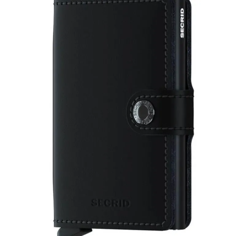 Secrid Miniwallet Matte black har skinnomslag i glatt matt skinn som gjør den fargesterk og stilig. Dette er en robust skinntype som tåler hverdagens kjas og mas.Selve kortholderen er i aluminium med patentert skyvesystem som gjør det enkelt å få tak i akkurat det kortet du trenger ved hjelp av et lett trykk på utløserknappen. Kortholderen beskytter kortene fra å bøyes eller knekke, og sikrer kortene mot tyveri ved at den blokkerer for trådløs avlesning. Med plass til 4-6 kort.Omslaget i skinn gjør at kortholderen fungerer som en liten lommebok med plass til sedler, billetter og annet.Secrid har stor suksess med sin kortholder som ble lansert i 2009,og mye av dette skyldes en unik kombinasjon av moderne produksjonsteknikker , godt kvalitesskinn og et gjennomtenkt design.Selve kortholderen er i aluminium og dette gir den lav vekt , men beskytter også kortene mot å bøyes eller knekke, og den sikrer kortene mot tyveri så lenge de er inni kortholderen.(RFID sikker ; radio-frequency identification).Ved hjelp av en liten knapp skyves kortene ut av holderen slik at man enkelt får tak i det kortet man skal bruke.Secrid Miniwallets er et stort spekter av kortholdere med skinnomslag som gjør at kortholderen også fungerer som en liten lommebok der man kan oppbevare sedler ,billetter og annet.Hver kortholder rommer 4-6 kort ; 4 kort med opphøyet preging og opp til 6 kort uten preging.
