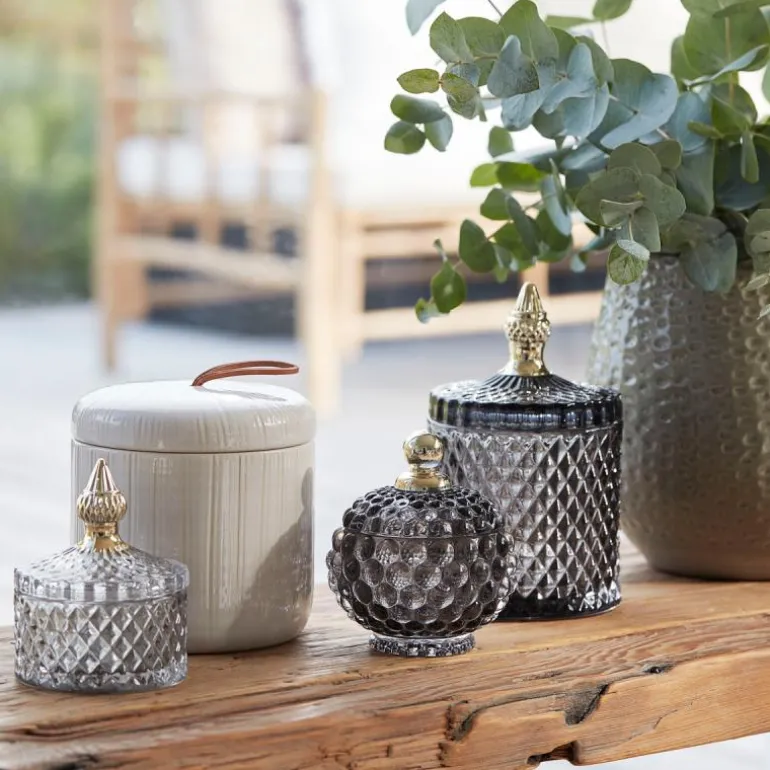En krukke fra Miya-serien fra Lene Bjerre er ikke bare en glasskrukke – det er et ekte kunstverk! Denne krukken skaper umiddelbart oppmerksomhet i hjemmet med sitt elegante design og unike glassmønstre. Den er ikke bare et dekorativt element, men også utrolig praktisk. Bruk krukken til å oppbevare alle dine smykker eller andre småting på en smart og stilig måte.