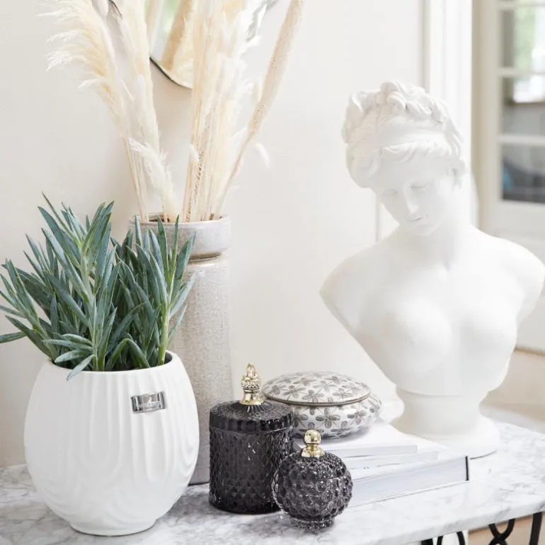 En krukke fra Miya-serien fra Lene Bjerre er ikke bare en glasskrukke – det er et ekte kunstverk! Denne krukken skaper umiddelbart oppmerksomhet i hjemmet med sitt elegante design og unike glassmønstre. Den er ikke bare et dekorativt element, men også utrolig praktisk. Bruk krukken til å oppbevare alle dine smykker eller andre småting på en smart og stilig måte.