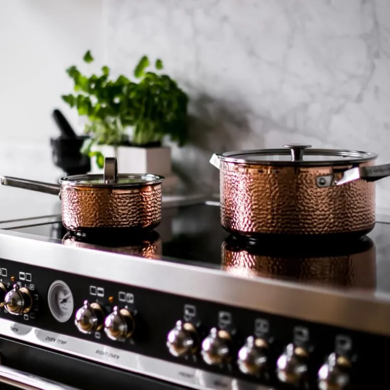 Alle produktene er laget av ekte hamret kobber med en kjerne av rustfritt stål, som gir utmerket varmefordeling og holdbarhet. Kobberet oksiderer naturlig, og det kan oppstå flekker over tid; disse kan fjernes med kobberpuss for å gjenopprette den opprinnelige glansen. Grytene og pannen tåler oppvaskmaskin, men kan få flekker ved bruk på gasskomfyr, i ovn eller i oppvaskmaskin.