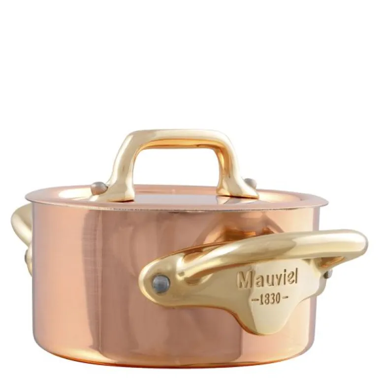 M’minis gryte med lokk 30 cl kobber/messing. Mauviel gir profesjonelle og private kokker den beste kulinariske teknologien. Mauviels minigryter og -panner med kobber har et innvendig belegg av rustfritt stål, og vakker kobber ytterst. Det gir overlegen kontroll over matlagingen, siden kobber har høy yteevne fordi materialet varmes opp svært jevnt og mye raskere enn andre metaller.