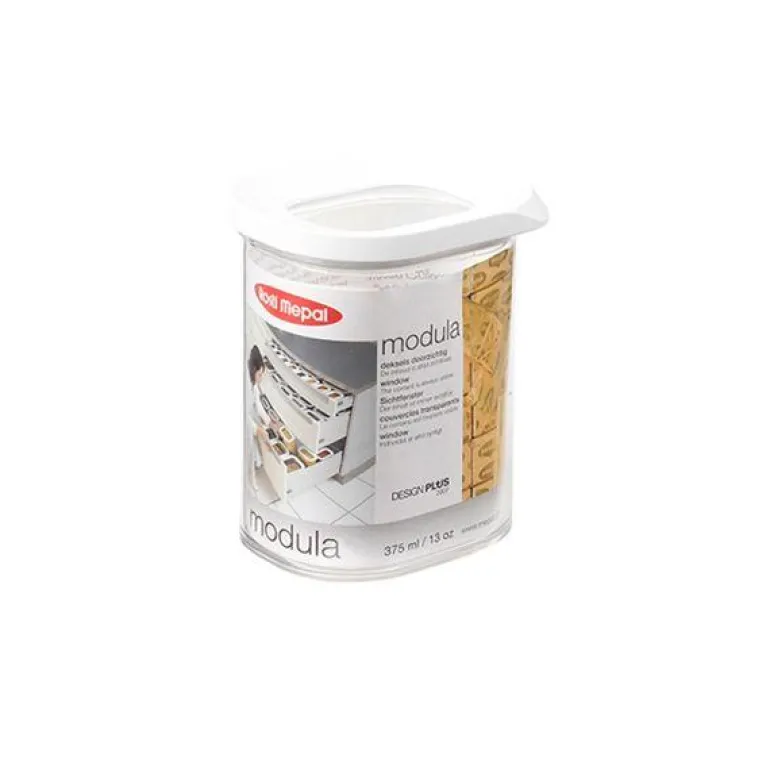Mepal Modula modulboks hjelper deg med å få overblikk i ditt kjøkken! Det gjennomsiktige lokket gir overblikk når boksene plasseres i kjøkkenskuffen. Modula boksen mottok i 2007 den prestisjefylte DESIGN+ prisen. Prisen gis for godt design, mens plus’et gis når produktet har ekstraordinær funksjonell verdi.Mål: 9 x 7 x 11 cm. Boksen er fremstillt av SAN-plast, som er robust og motstandsdyktig overfor riper. Egnet for oppvaskmaskin, men ikke til mikroovn og fryser. Mepal Modula oppbevaringsboks med enkel hvit kant på lokket. Både boks og lokk er gjennomsiktig, hvilket gjør det enkelt å se innholdet.