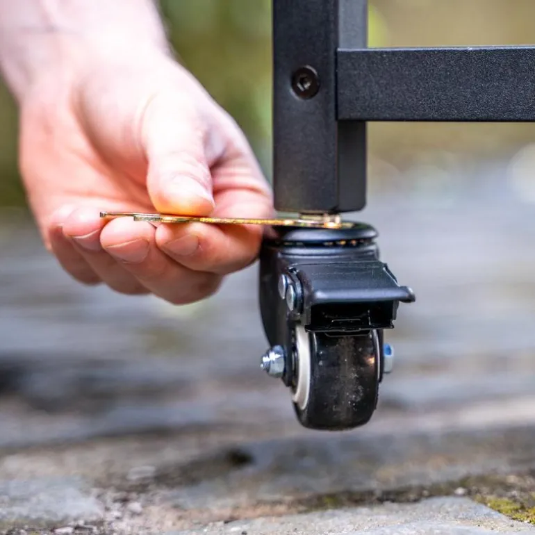 Den robuste rammen på modulbordet gir stabilitet og holdbarhet, mens de praktiske hyllene og krokene sørger for at redskapene, pizzasteinen, ingrediensene (og annet tilbehør) er der du trenger dem. Hyllene kan du selvfølgelig justere høyden på.