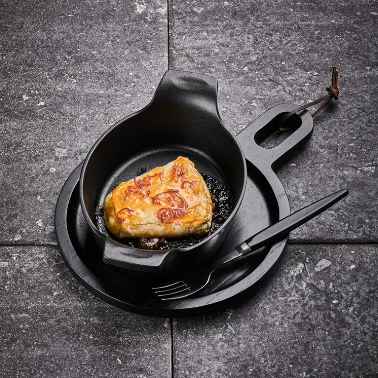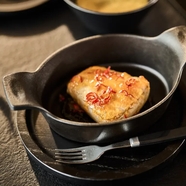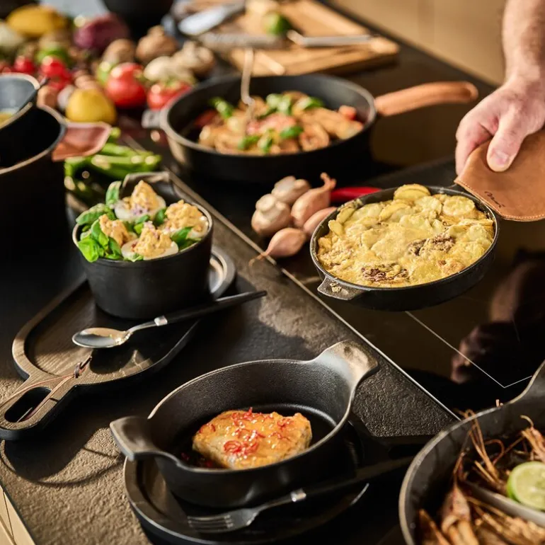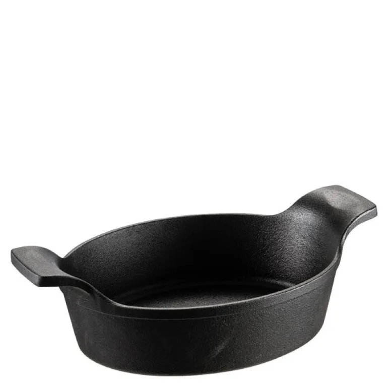 Moi ildfast form 0,8 L svart i støpejern, en del av Moi-serien, er det perfekte valget for steking, grilling og servering av tapas. Laget av robust støpejern, sikrer denne formen en jevn varmefordeling, noe som gir en vakker og smakfull stekeoverflate på dine retter. Med sin slitesterke kvalitet er den et uunnværlig redskap på kjøkkenet, både funksjonell og stilren i sitt design.