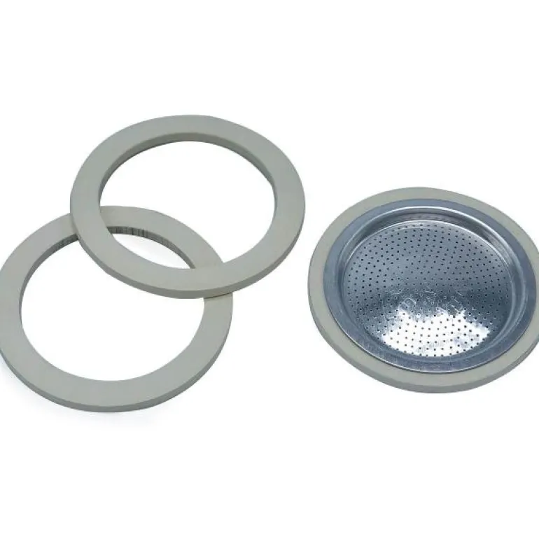 3 stk pakninger og 1 stk filterplate til 9 kopper Moka Express fra Bialetti.