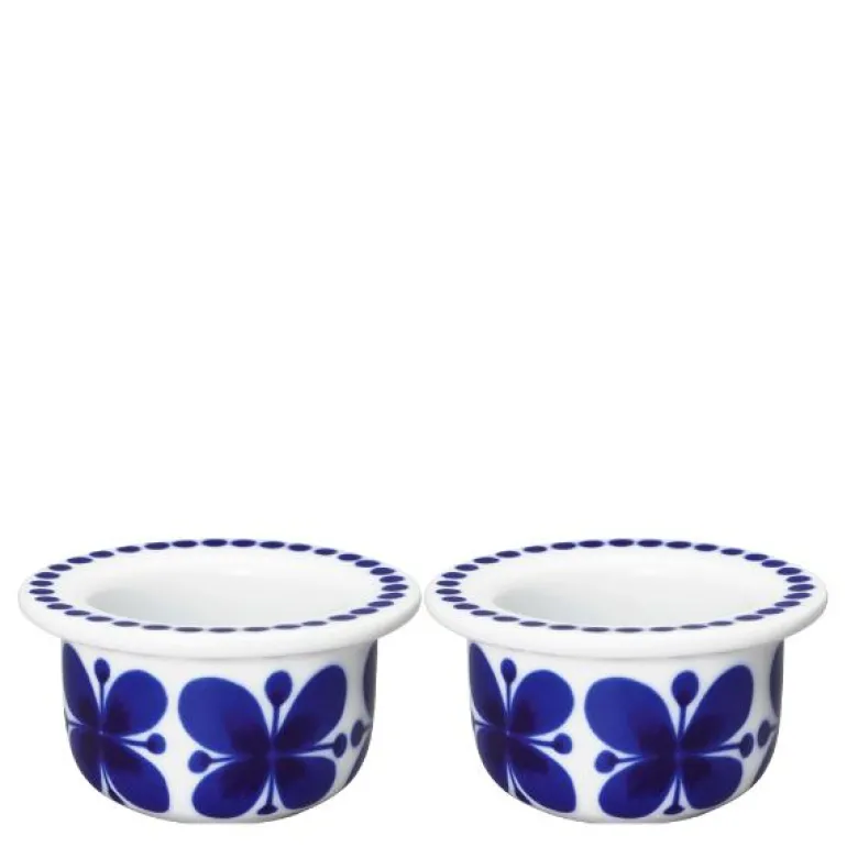 Eggekoppene fra Rörstrand har en nostalgisk design i hvitt porselen med et ikonisk, koboltblått blomstermotiv. Eggekoppene har en moderne form for alle typer borddekking. Tåler oppvaskmaskin.