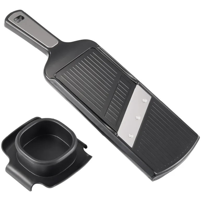Med justerbar skjærtykkelse og utskiftbare blader kan du enkelt velge mellom julienne og vanlige skiver. Matvareholderen beskytter fingrene og gir trygg håndtering under bruk. Perfekt for salater, gryter og wok. Rengjøres for hånd for å bevare skarpheten.