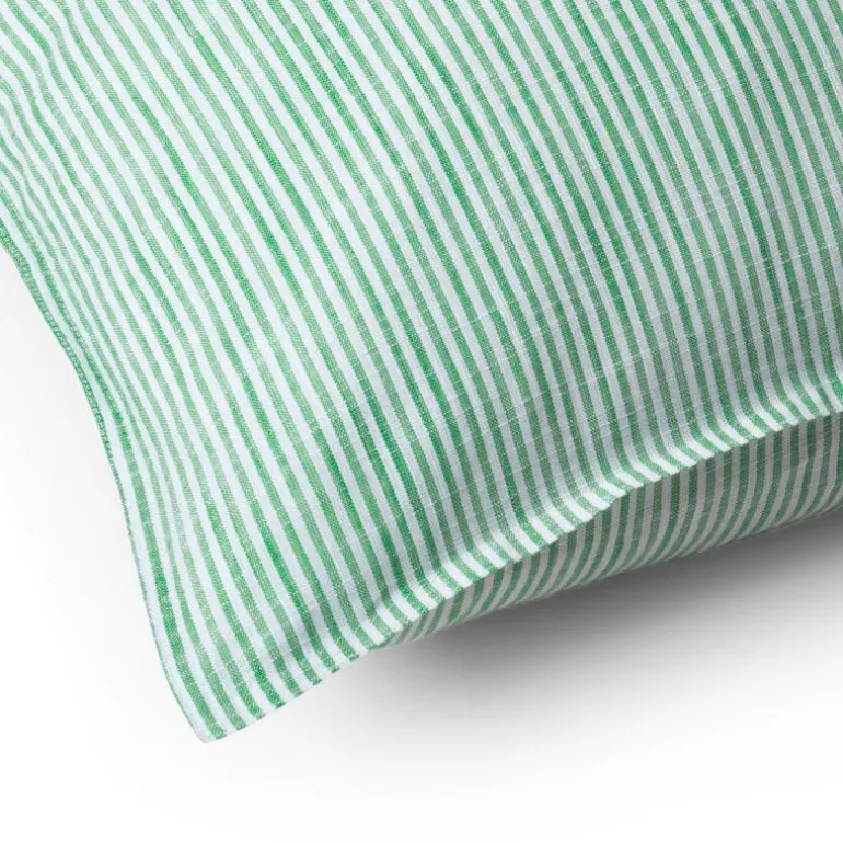 Nydelig putetrekk, Lines 50 x 70 cm i grønn/hvit fargekombinasjon fra Juna. Serien Monochrome er skapt i 100 % økologisk bomull og vevd på en måte som gir stoffet et rått og uformelt utseende som er inspirert av naturens strukturer med en helt spesiell overflate som føles himmelsk mot huden. Dette sengesettet fra Monochrome Lines kommer i en grønn farge, og det spesielle vevingen med en ujevn tråd skaper unike variasjoner i stoffets struktur og gjør fargen levende.
