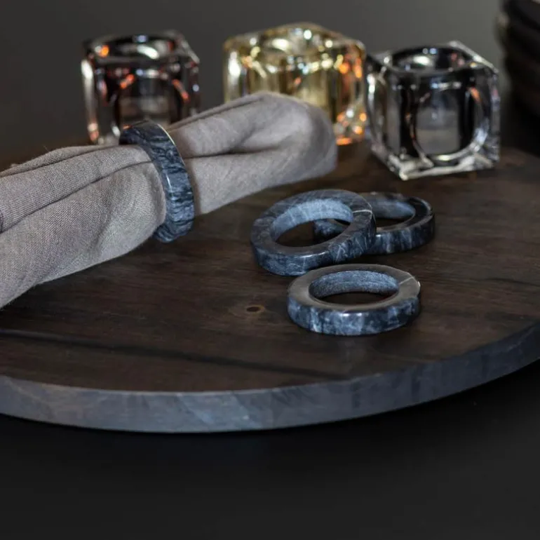 Stiernholm Mood serviettringer i mørk grå marmor som gir et luksuriøst uttrykk til det dekkede bordet. Rengjøres med en fuktig klut. Serviettringene kommer i 4pk