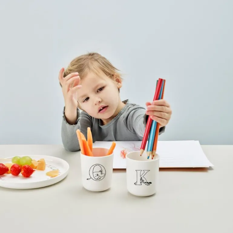 Mummiene er sentrale karakterer i en rekke bøker og og tegneserier av den svensk-finske illustratøren og forfatteren Tove Jansson. Moomin ABC er utviklet spesielt til barn, med myke former som gjør det enkelt å holde i. Grafikken inspirerer til lek med bokstaver, og kan vekke barnets interesse for å lære å lese. Mummi ABC koppen kommer i 26 versjoner med hver sin bokstav , samt en av de spennende og morsomme figurene fra Mummienes verden. Koppen rommer 0.2 l og er laget i ABS plast, som er slitesterkt. Tåler både oppvaskmaskin og mikrobølgeovn og er fri for BPA, Phtalater og andre skadelige stoffer. Det finnes også en drikketut, til de minste barna, som kjøpes separat.
