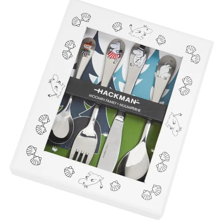 Mummifamilien bestikksett for barn i 4 deler: