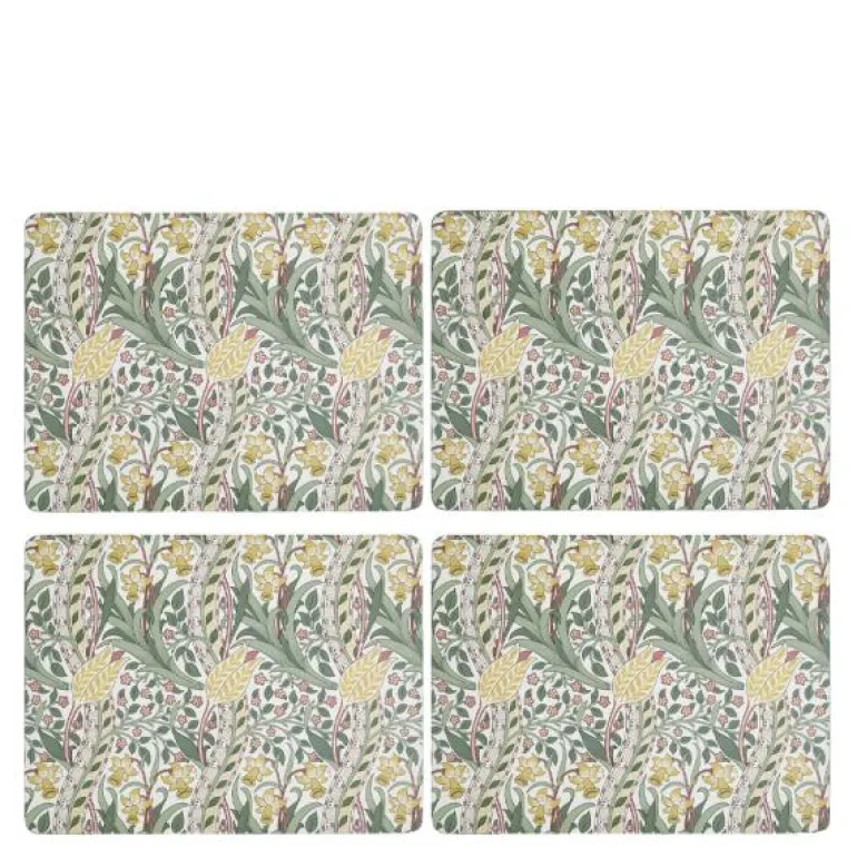 Gi borddekkingen et klassisk løft med Daffodil bordbrikker fra Morris & Co. Dette settet med fire store brikker bringer tidløs britisk design til måltidene, med det populære mønsteret hentet fra Pimpernels arkiv – her i en vakker og moderne fargepalett.
