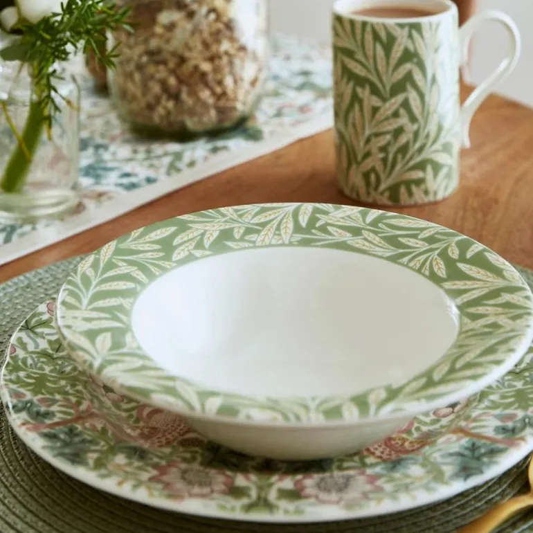 Gi frokostbordet ditt et løft med denne elegante skålen fra Spode, dekorert med det klassiske Willow Bough-mønsteret fra Morris & Co. Det vakre, bladinspirerte motivet slynger seg rundt kanten og gir en frisk kontrast til den rene, hvite bunnen i midten.