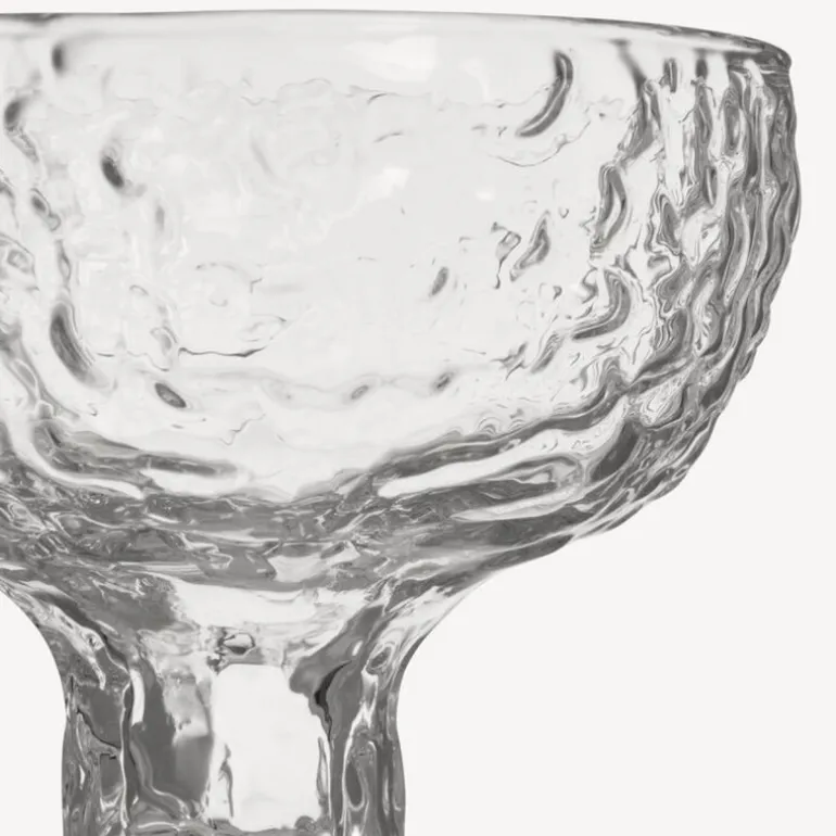 Moss coupe champagneglass 35 cl fra Kosta Boda er et glass som forener historie og moderne design i et elegant uttrykk. Serien er laget med gamle former fra Kosta Glasbruk, som er skåret ut for hånd for å skape en bølgende og livlig overflate. Denne strukturen gir glasset et dynamisk preg der lyset reflekteres i spennende mønstre.