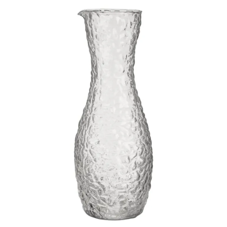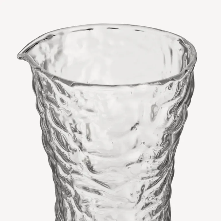 Den klare glassutførelsen fremhever innholdet og skaper et dynamisk uttrykk, enten du serverer vann, juice eller vin. Karaffelen er designet av Åsa Jungnelius og produsert i Kosta, med et formspråk som kombinerer historiske røtter med en frisk, moderne estetikk.