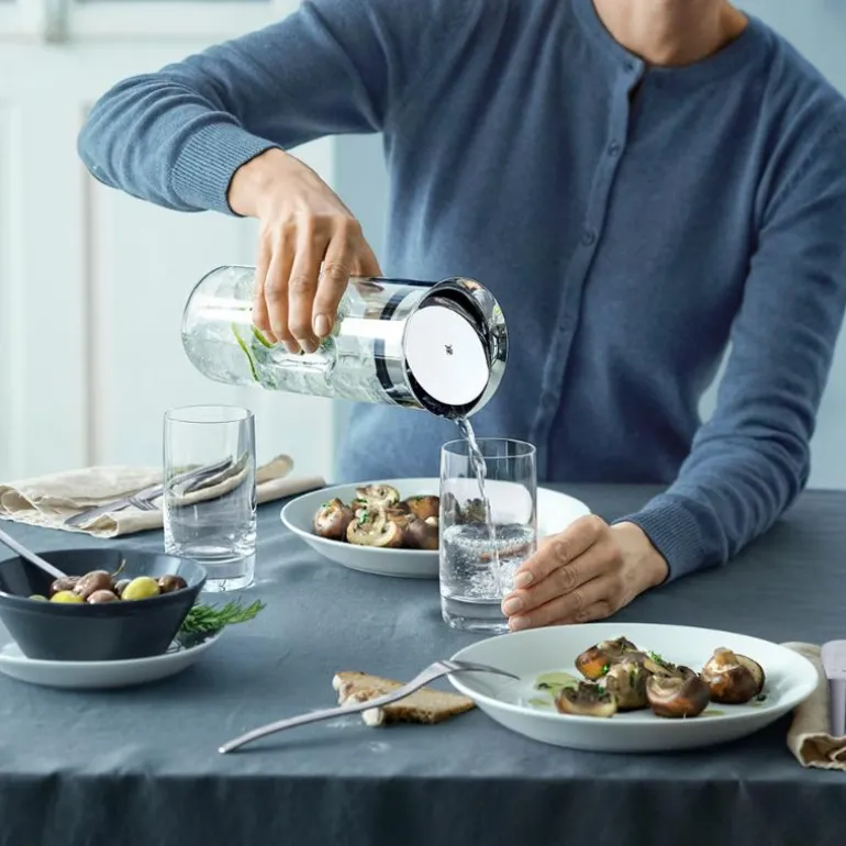 Uansett om du er på farten eller hjemme, så sørger vannkaraflene fra kolleksjonen Motion alltid for at du kan nyte drikken din på en enkel, praktisk og attraktiv måte. I disse vannkaraflene kombineres komfort med nytelse. De er håndterbare, de har en ergonomisk utforming, og med sitt vakre og moderne design er vannkaraflene også en sann fryd for øyet – hver eneste dag, til enhver anledning og på ethvert bord. I en kombinasjon av kvalitetsmaterialer som varmebestandig WMF-glass, silikon og Cromargan® er karaflene alltid moderne og praktiske vannbeholdere.