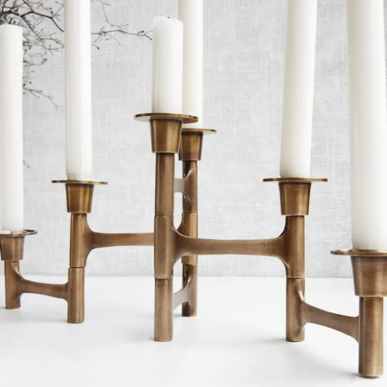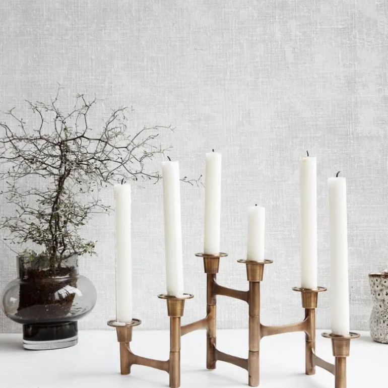 Skap en koselig atmosfære og masse personlighet i hjemmet ditt med en fantastisk lysestake. Move from House Doctor er en fin lysestake med et skulpturelt utseende og plass til seks lys. Lysestaken er laget av messing, noe som gir et moderne og rent utseende til produktet. Bruk denne lysestaken som et vakkert designobjekt på spisebordet eller i stuen både med og uten stearinlys. Passer til stearinlys med en diameter på 2 cm