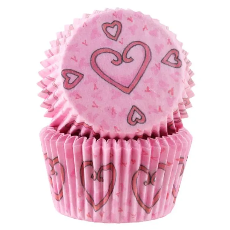 Muffinsform Rosa Hjerte, 50 Stk.