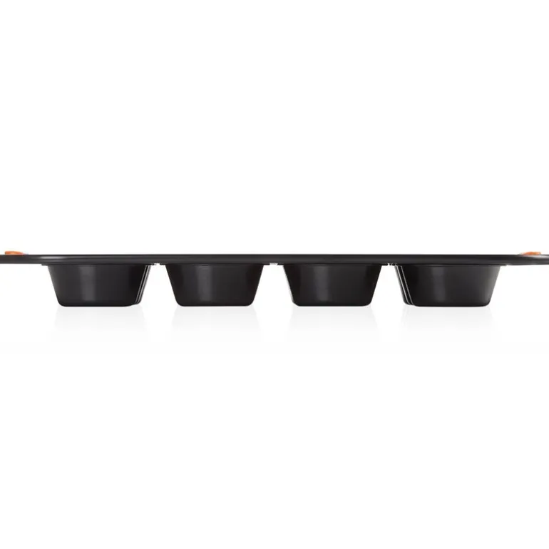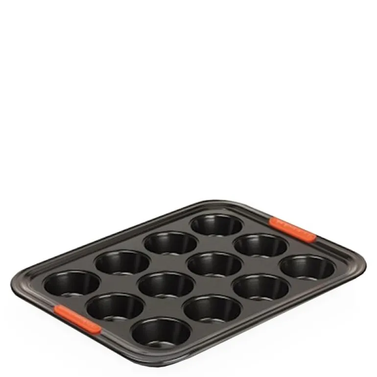 Alle bakeformer fra Le Creuset har varmebestandige og sklisikre silikonhåndtak som gjør det enkelt å håndtere formene. Overflaten gjør det lett å rengjøre formen. Le Creusets muffinform tåler opptil 240 °C i ovn og ikke oppvaskmaskin.