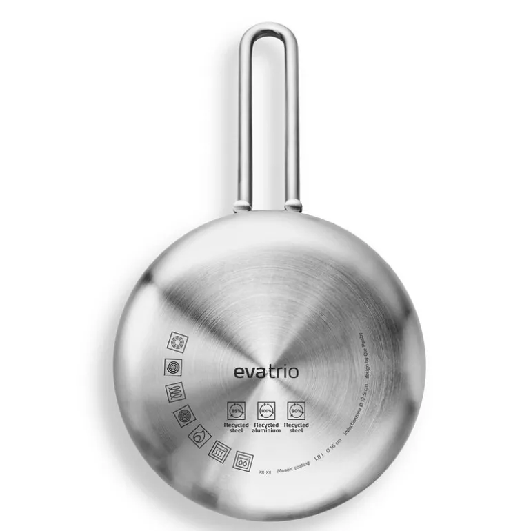 - Bunn: aluminium/rustfritt stål, Hoveddel: Alu-lag 100 % recycled post-consumer aluminium, Hoveddel: Stål-lag 90 % recycled post-consumer rustfritt stål 18/8, Håndtak: rustfritt stål, Keramisk Slip-Let®-belegg