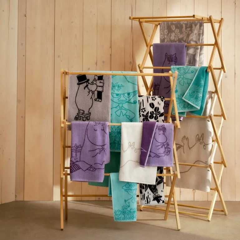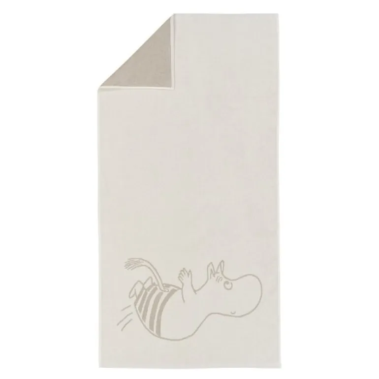 MoominArabia Mummi badehåndkle 70×140 cm Mummitrollet hvit gir en koselig og avslappende opplevelse etter hvert bad. Pakk deg inn i dette myke og komfortable håndkleet, mens du blir med Mummifamilien på deres eventyr på en øde øy. Mummitrollet og Snorkfrøken bygger sjømerker av drivved de finner i havet rundt øya og kaster ut garn for å fange fisk, selv om de ofte ender opp med tang. Dette badehåndkleet, laget av 100% økologisk bomull, er både skånsomt mot huden og miljøvennlig. Perfekt for alle som ønsker å bringe litt av Mummitrollets magiske verden inn i hverdagen.