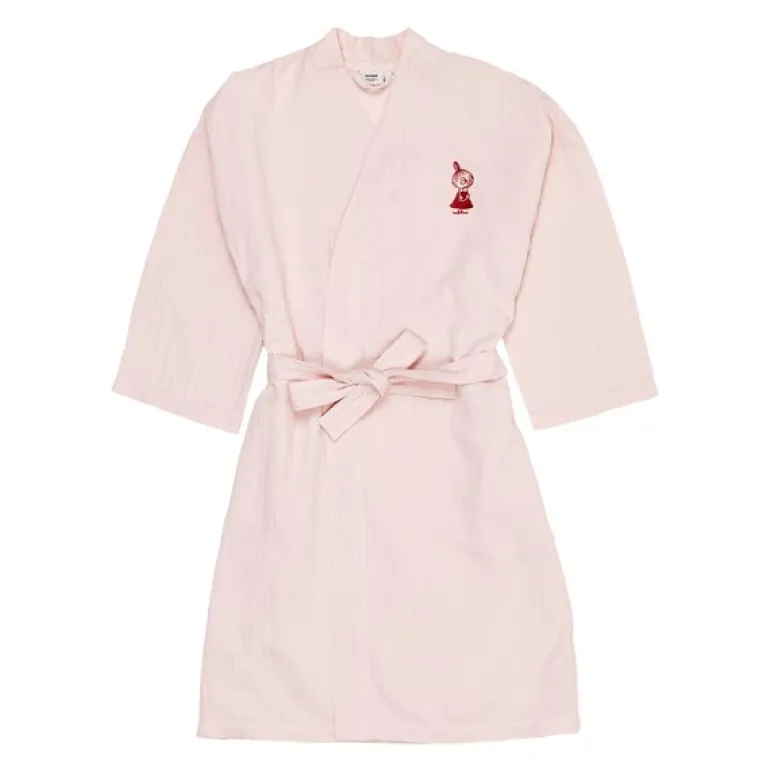 Mummi badekåpe fra MoominArabia i rosa musselin er et behagelig og elegant valg for avslapning hjemme. Denne badekåpen i størrelse S/M er laget av GOTS-sertifisert økologisk bomull, som gir en myk og lett følelse mot huden. En del av Moomin 80-kolleksjonen, badekåpen hyller mummihistorienes verdier om kjærlighet, vennskap og aksept. Designet i Finland og basert på Tove Janssons originale tegninger, er dette en perfekt gave til Mummi-entusiaster eller en luksuriøs detalj til ditt eget hjem.