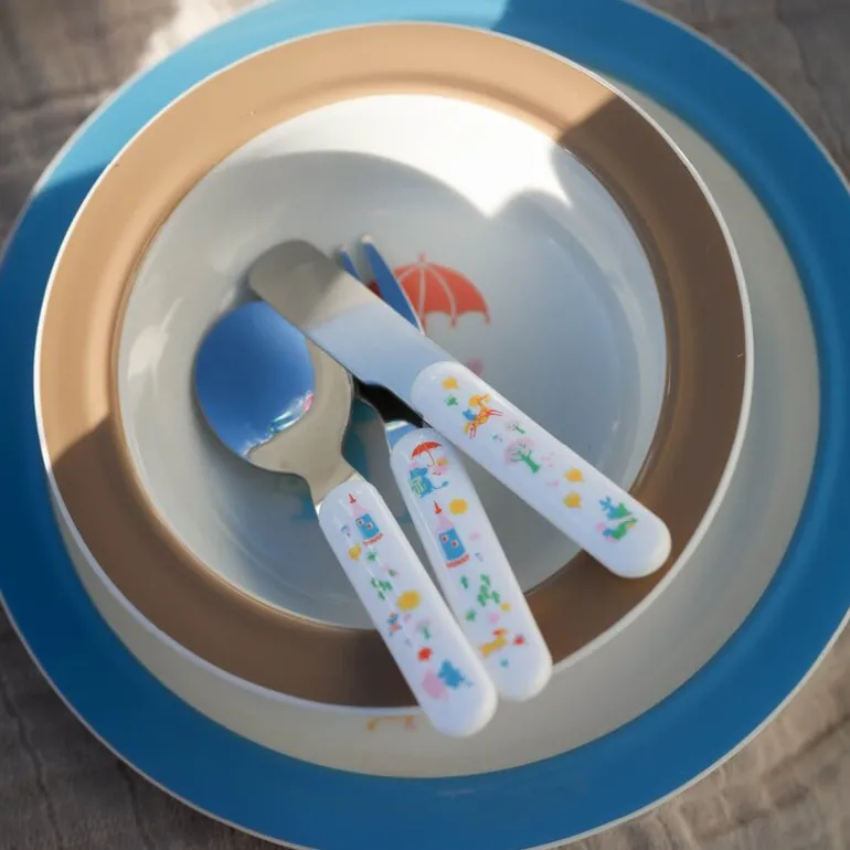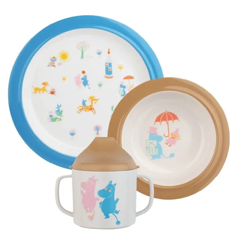 Dette eksklusive Mummi barneserviset fra Rätt Start, laget for å feire 80 år med Mummitrollet, er en perfekt gave til små barn. Settet inneholder tre deler: en sippykopp med to håndtak som gir barnet et stabilt grep, samt et lokk som sitter trygt fast takket være en silikonring. Tuten har en sølstopp som begrenser væskemengden, men ventilen kan fjernes når barnet blir større.