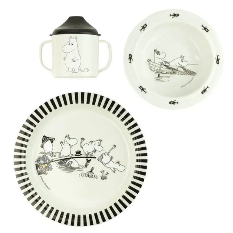 Dette Mummi barneserviset fra Rätt Start, dekorert med det lekne Vann & Bad-motivet, er en fin gave til små barn og en praktisk del av måltidene. Settet inneholder tre deler: en sippykopp med to håndtak som gir barnet et stabilt grep, samt et lokk som sitter trygt fast takket være en silikonring. Tuten har en sølstopp som begrenser væskemengden, men ventilen kan fjernes når barnet blir større.