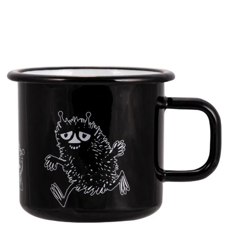 Mummi emaljekopp på 37 cl med motivet av den rampete Stinky fra Muurla er en morsom og praktisk kopp for både små og store Mummi-entusiaster. Den myke kantovergangen gir en behagelig drikkeopplevelse, og koppen kan brukes på komfyr, induksjonsplate, i ovnen og oppvaskmaskinen, men er ikke egnet for mikrobølgeovn. Som et håndlaget produkt har hver kopp sitt eget unike uttrykk.