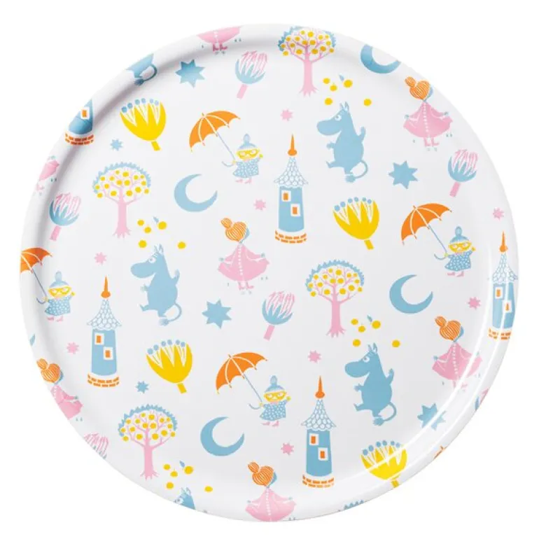 Dette serveringsbrettet passer utmerket sammen med Fest-kolleksjonens andre deler, som det matchende Moomin Arabia forkle. Lag en hyggelig atmosfære ved bordet med en dose mummimagi.