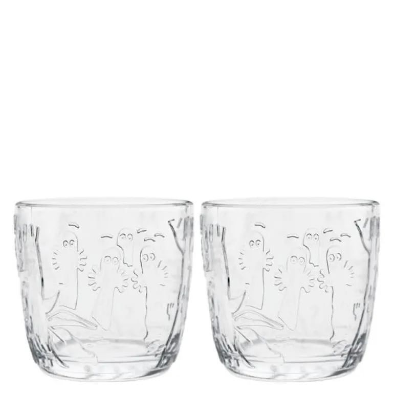 To stykk glass 28 cl, i klar fra Moomin Arabia. Utforsk den fantastiske glasskolleksjonen inspirert av Tove Janssons bok “Trollmannens hatt”. Produktene er dekorert med vakre teksturer som fanger stemningen av mystisk skog der Mummitrollene leker gjemsel.