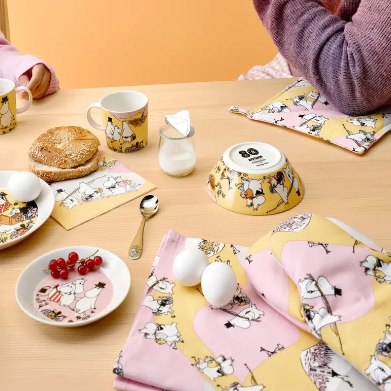 Ikke la varme gryter og stekebrett sette en stopper for kjøkkeneksperimentene dine! Moomin Arabia grytevott 15 x 34 cm fra Familietid-serien kombinerer praktisk beskyttelse med et sjarmerende og eventyrlig design. Motivet henter inspirasjon fra Mummifamiliens nære bånd og små øyeblikk av glede, og tilfører en koselig atmosfære til ethvert kjøkken.