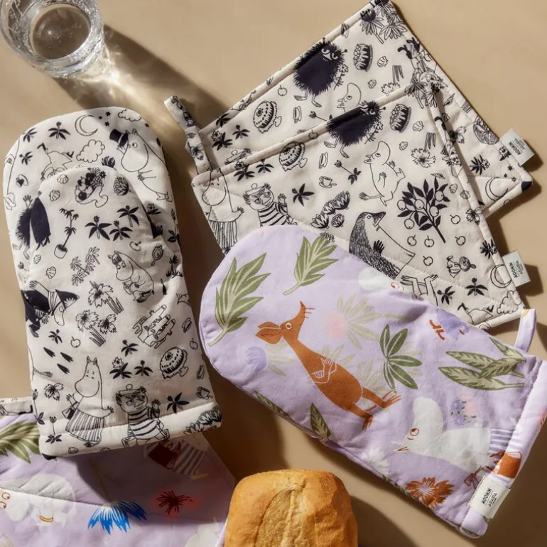 Mummi grytevott i off-white, mål 15×34 cm, fra MoominArabia er perfekt når Mummitrollet arrangerer festmåltid for å nyte ulike delikatesser! Mummi-kjøkkenhåndklær passer like godt til både hverdag og fest. De velkjente Mumindalen-karakterene presenteres i subtile nyanser av svart og beige.