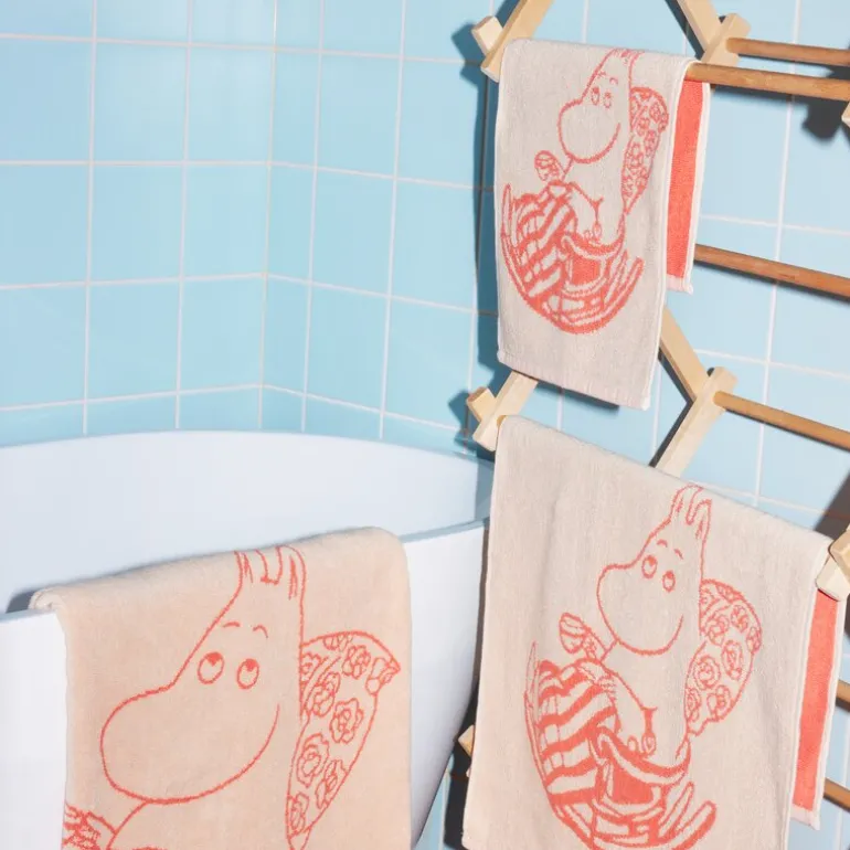 Dette myke og koselige Mummihåndkleet fra MoominArabia måler 30×50 cm og kommer i en vakker ferskenfarge med Mummimor som motiv. I historien bak designet bygger Mummimamma en steinhage, som dessverre blir ødelagt av uforsiktige pirater. Til tross for deres ugagn klarer Mummimamma å få piratene til å gjenoppbygge hagen, selv om arbeidet går sakte. Dette håndkleet kombinerer funksjonalitet med en sjarmerende og morsom Mummidalen-historie, noe som gjør det til et perfekt tillegg til hjemmet ditt. Ideell for både barn og voksne som setter pris på eventyrene til Mummiverdenen.